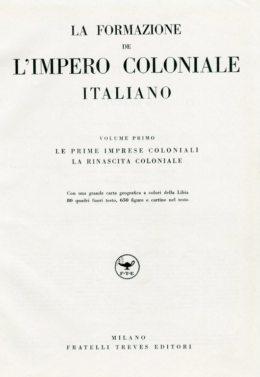 La Formazione De l'Impero Coloniale Italiano. Volume Primo. Le Prime Imprese Coloniali,la Rinascita Coloniale | Rare and modern books |