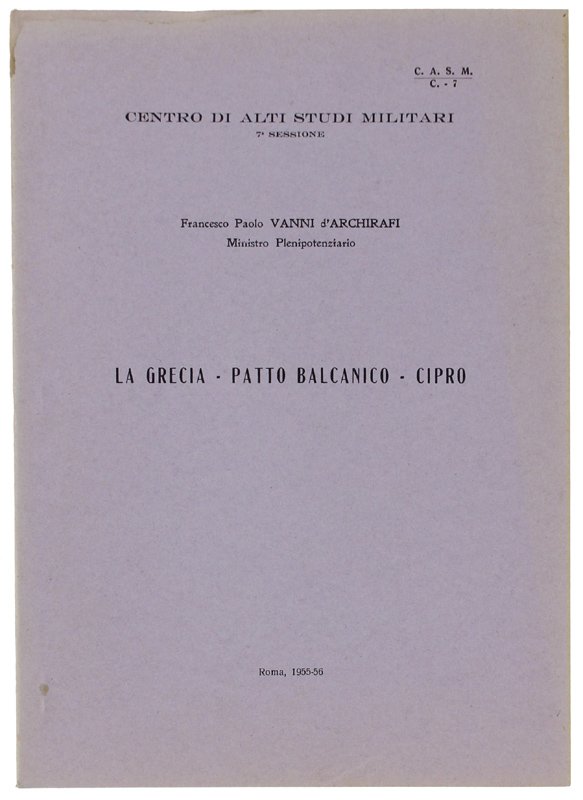 LA GRECIA - PATTO BALCANICO - CIPRO. | Rare and modern books | Vanni D'Archirafi Francesco Paolo.