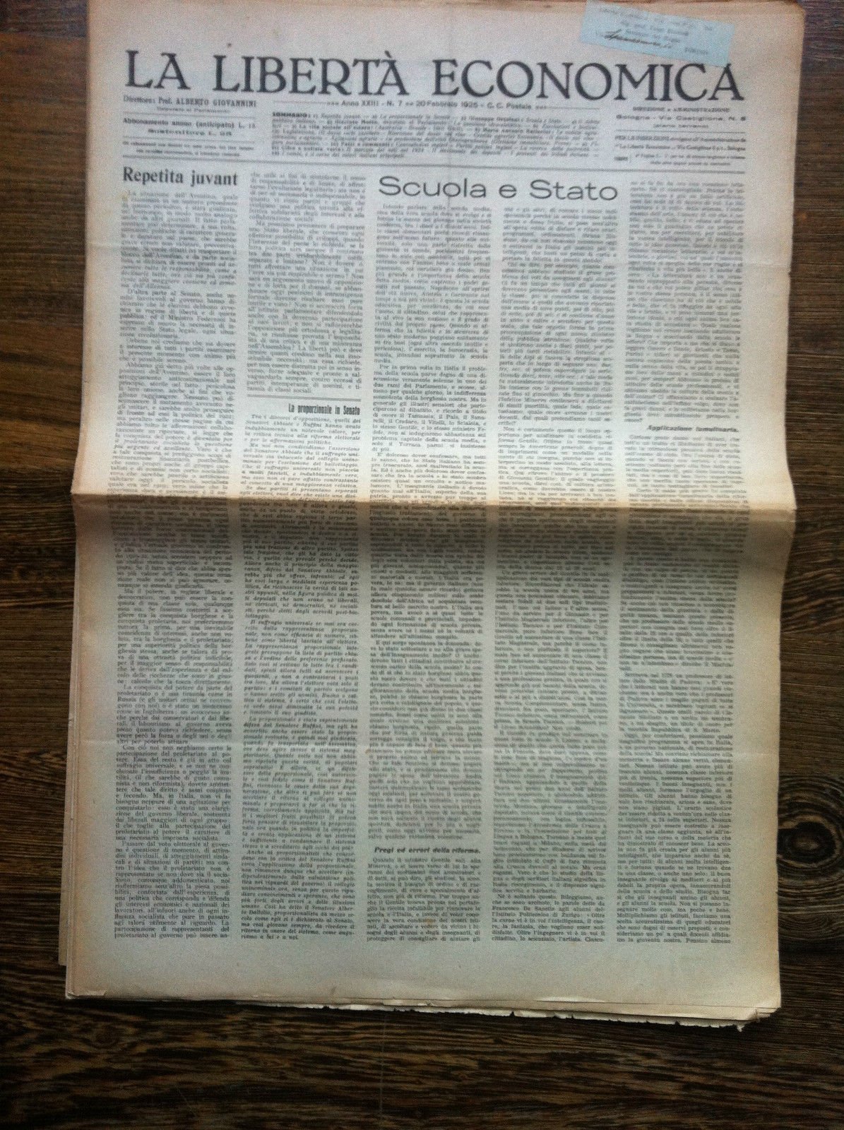 LA LIBERTA' ECONOMICADirettore Prof. Alberto GiovanniniCopia indirizzata in abbonamento al Sig. Prof. Luigi Einaudi Torino Senatore del RegnoIn buono stato (25 g)E11341