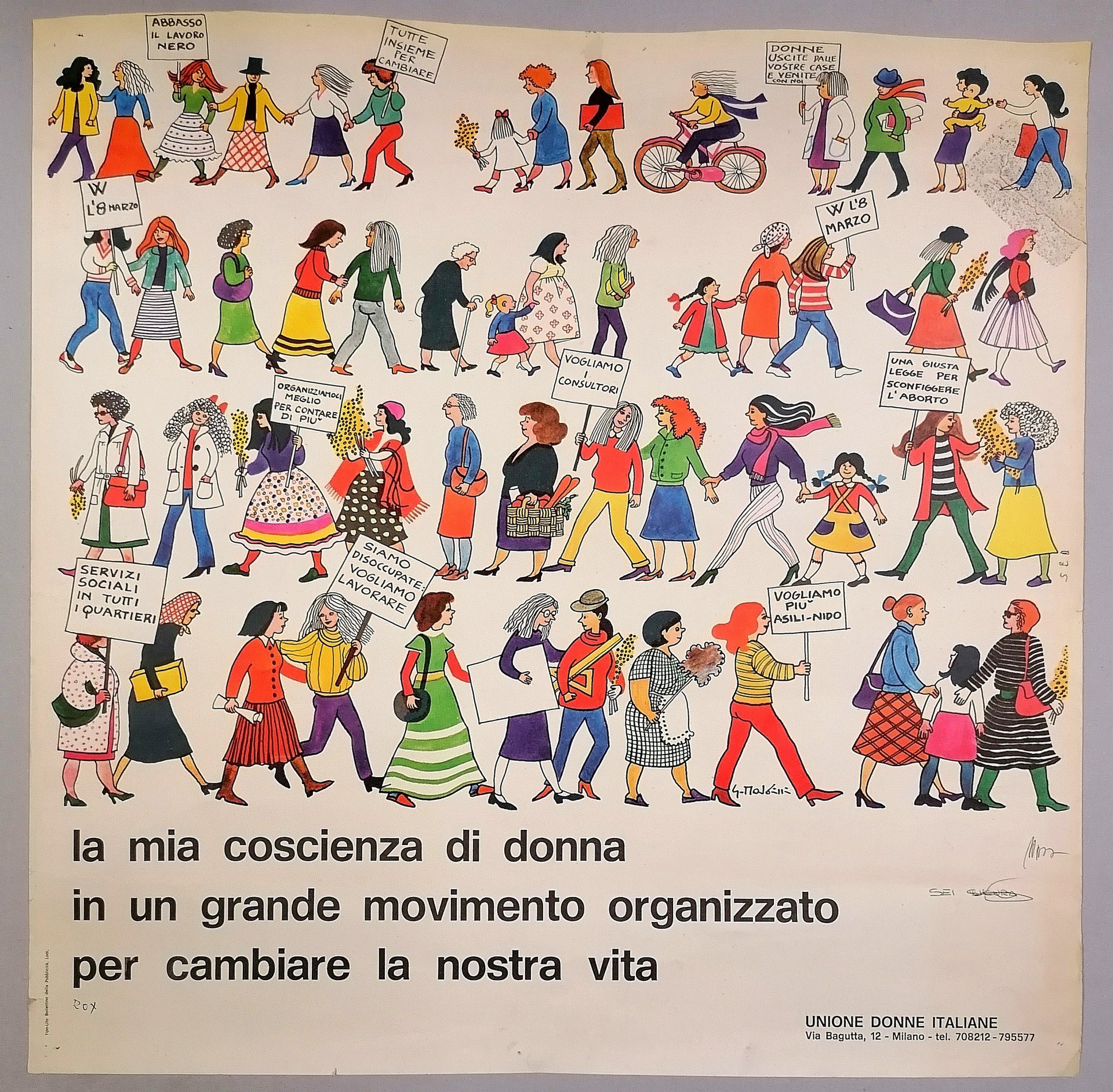 La mia coscienza di donna in un grande movimento organizzato per cambiare la nostra vita. Manifesto | Rare and modern books | (Femminismo) Udi (Unione Donne Italiane)