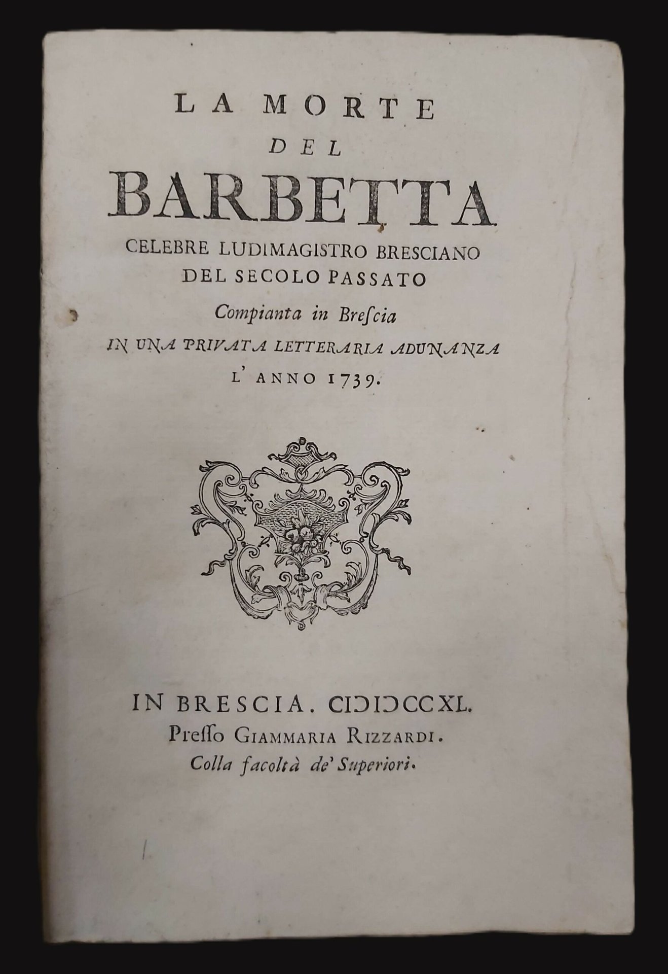 LA MORTE DEL BARBETTA celebre Ludimagistro Bresciano del secolo passato, compianto in Brescia in una privata letteraria adunanza l’anno 1739.