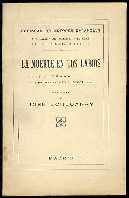 La muerte en los labios. (Drama en tres actos y en prosa. Representado por primera vez en el Teatro Español el 30 de Noviembre de 1880) | Rare and modern books | Echegaray, José