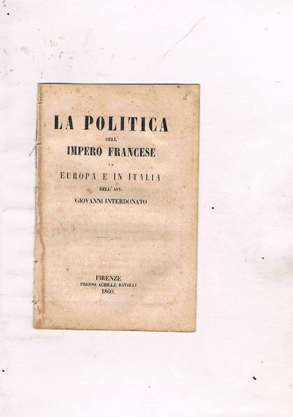La politica dell'impero francese in Europa e in Italia. | Rare and modern books | Interdonato Giovanni.
