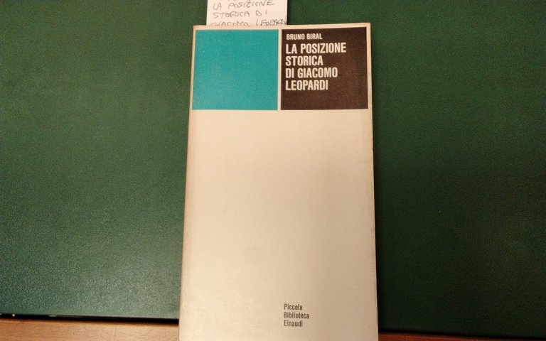 La posizione storica di Giacomo Leopardi | Rare and modern books | Bruno Biral