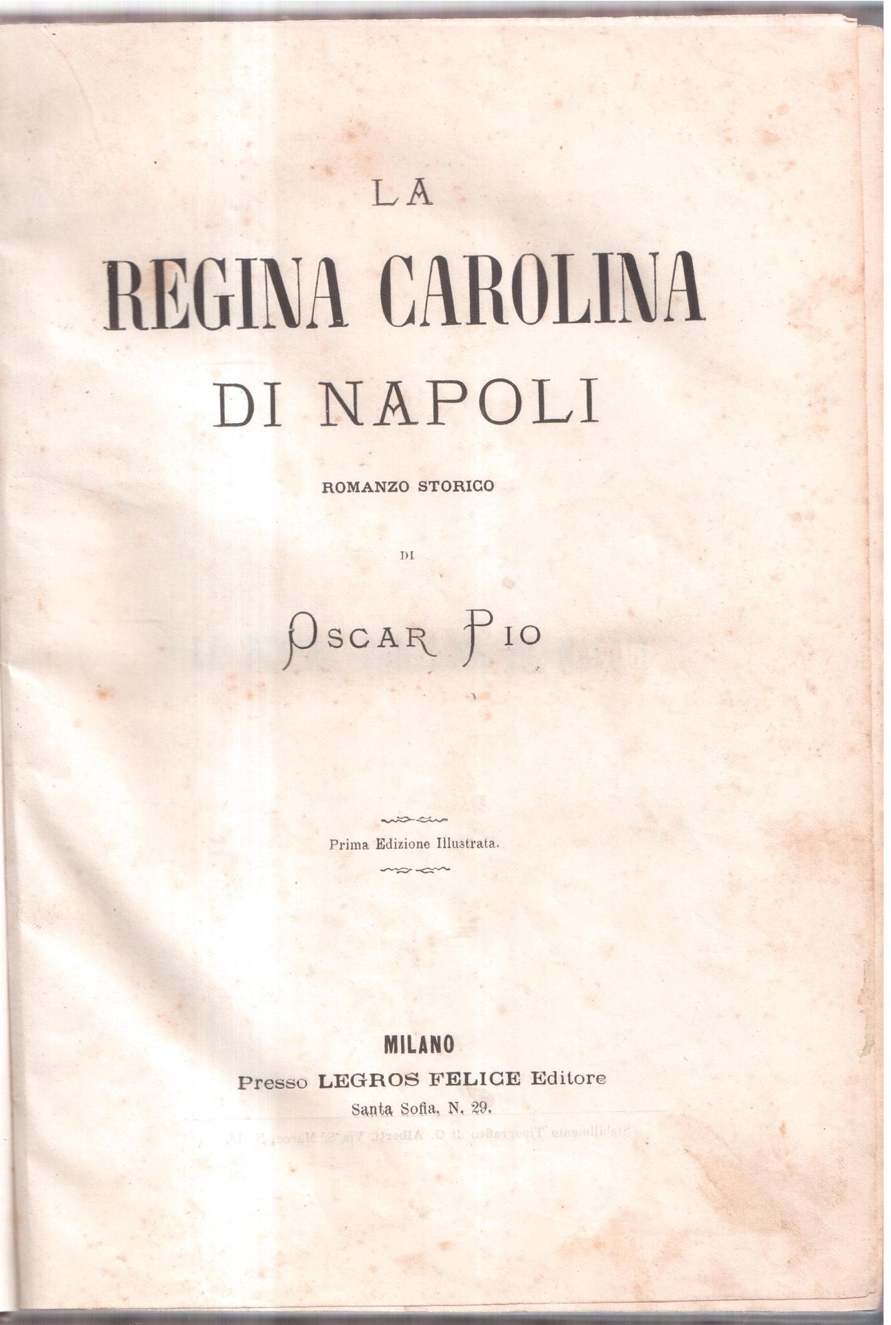 La Regina Carolina di Napoli Romanzo storico | Rare and modern books | Oscar Pio