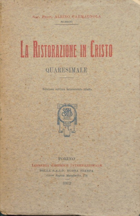 Quaresimale - Edizione settima interamente rifatta - in 8° - pp.810 - Brossura editoriale - Volume quasi interamente intonso - Un fascicolo slegato