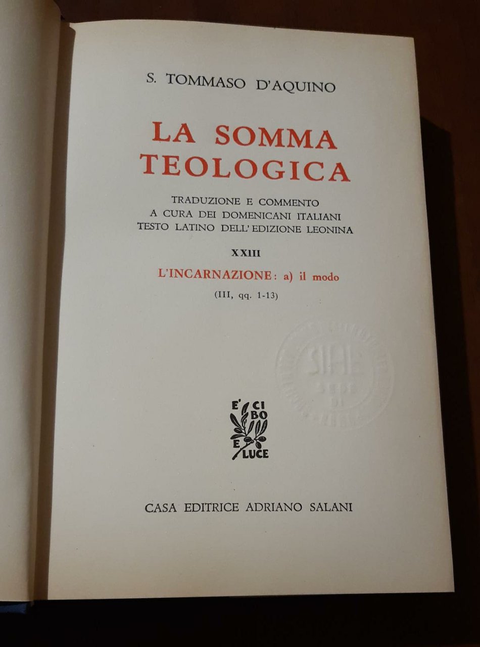 La somma teologica S.tommaso D'Aquino L'Incarnazione volume XXIII