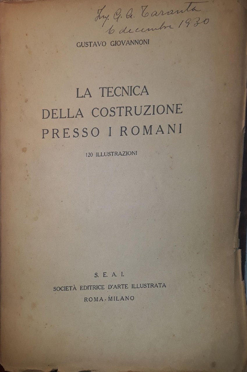 La tecnica della costruzione presso i romani | Rare and modern books | Gustavo Giovannoni, ,Gustavo Giovannoni