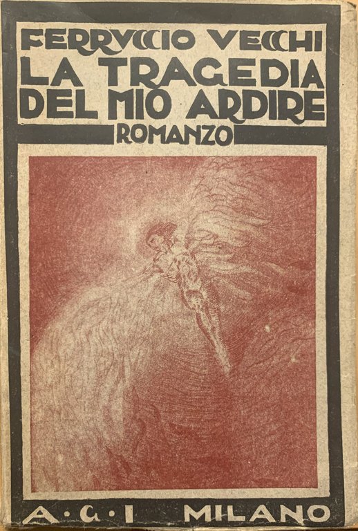 I ed., 5^ migliaio. Composto dalla Lino-Compositrice di A. Pavone & C. di Milano (13), Via Francesco Sforza, 5. Stampato dalla Tipografia E. Bellasio & C., Milano (16), Via Daniele Crespi, 7. Indice: presentazione; dell'Editore (Milano, 13 Gennaio 1923) - La tragedia del mio ardire (In Milano, dal 2 aprile al 22 giugno 1922). In-16, pp. (10)+508, brossura con illustrazione al primo piatto e fregio al dorso in rosso. In antiporta un ritratto a colori dell'autore protetto da carta velina. Un fregio in nero al termine del volume (copertina, ritratto e fregi di Franco Felin). In quarta di copertina il motto della Casa Editrice in rosso. Nel ritratto e nel fregio all'interno del volume il motto "Meglio un istante da ardito che cent'anni da vigliacco", da "Arditismo Civile" (Ferruccio Vecchi fu direttore del settimanale "L'Ardito", periodico dell'Arditismo, il movimento fondato da Mario Carli con il Vecchi e Filippo Tommaso Marinetti). Stato buono (copertina e pagine lievemente ingiallite)