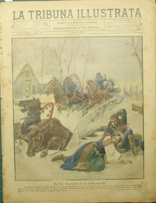 Supplemento illustrato de La tribuna - Collana La tribuna illustrata. Anno XXX. N. 10 - in 4° - pp.15 - Brossura editoriale illustrata - Illustrazioni a colori alla brossura e in b/n nel testo - Testo su più colonne - Brossura in parte staccata