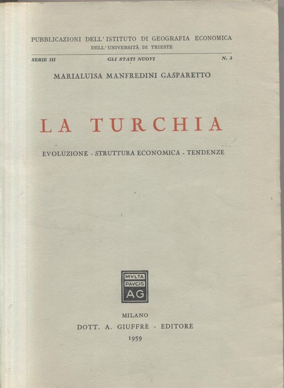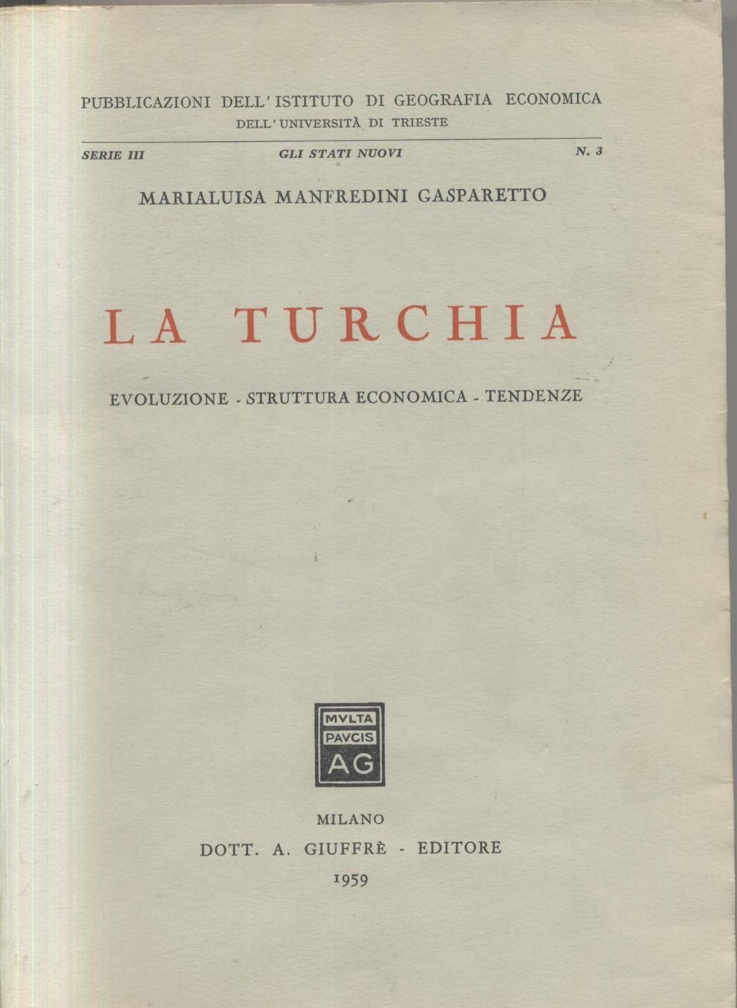 LA TURCHIA di Maria Luisa Manfredini Gasparetto 1959 Giuffrè evoluzione libro | Rare and modern books |