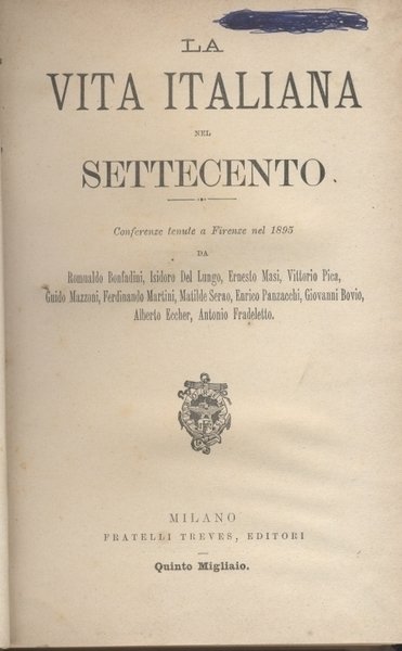 LA VITA ITALIANA NEL SETTECENTO - Conferenze tenute a Firenze nel 1895