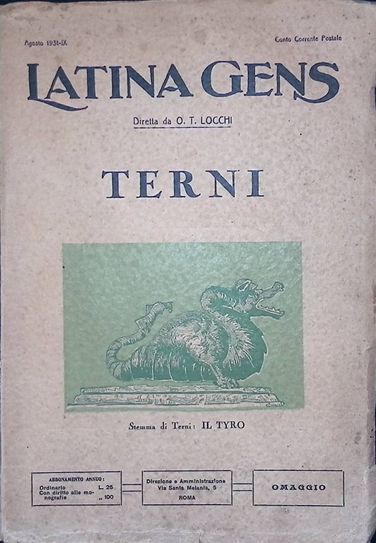 Latina Gens. Anno IX, agosto 1931 XI. Terni | Rare and modern books | Locchi O.T., Direttore