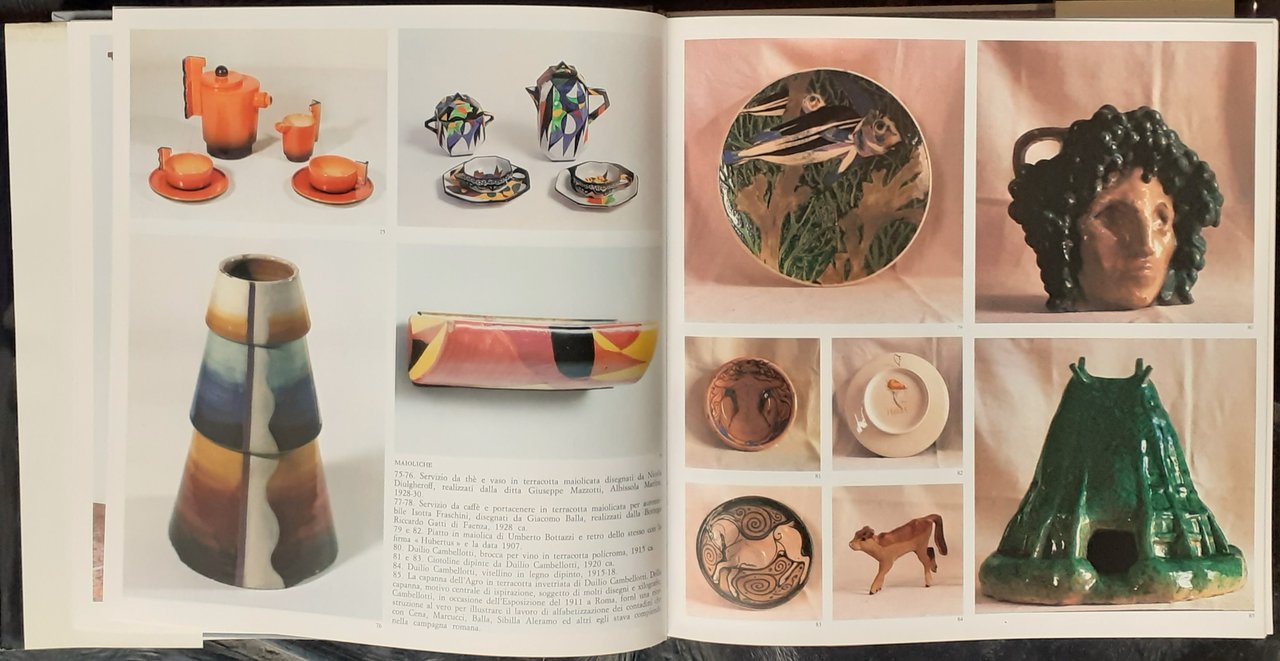 I ed., collezione "Grandi opere". Indice: Premessa; I.d.G-M.P.M. - Ringraziamenti - Le arti decorative dall'Unità al fascismo (L'arte dell'Italia post-unitaria - Reazione all'eclettismo. Modernismo - Il primo decennio del nuovo secolo - Gli anni Venti e le Biennali di Monza - Repertorio - Bibliografia - Indice dei nomi. In8 quasi quadro, pp. VIII+328, cart., sovraccoperta con illustrazione a colori al primo piatto (Giovanni Prini, giocattoli a molla in cartapesta prodotti dalla SFAGI, 1917-8). Con 107 illustrazioni a colori+numerose altre illustrazioni in b/n. Stato buono (lievissima usura della copertina ai margini) Repertorio (Domenico Baccarini - Giacomo Balla - Guido Maria Balsamo Stella - Nino Bertoletti - Alfredo Biagini - Amedeo Bocchi - Emma Bonazzi (Tigiù) - Umberto Bottazzi - Renato Brozzi - Cadorin - Duilio Cambellotti - Cascella - Felice Casorati - Giuseppe Cellini - Giorgio Ceragioli - Gigi Chessa - Galileo Chini - Francesco Dal Pozzo - Edoardo De Albertis - Adolfo De Carolis - Mario De Maria (Marius Pictor) - Fortunato Depero - Nicola Diulgheroff - Alma Fidora - Mariano Fortuny - Edoardo Gioja - Vittorio Grassi - Giovanni Guerrini - Bice Lazzari - Alberto Martini - Napoleone Martinuzzi - Guido Marussig - Fortunino Matania - Melkiorre Melis - Ugo Nebbia - Marcello Nizzoli - Francesco Nonni - Paolo Antonio Paschetto - Enrico Prampolini - Giovanni Prini - Alberto Savinio - Augusto Sezanne - Mario Sironi - Ernesto Michaelles Thayaht - Antonio Ugo - Teodoro Wolf Ferrari - Ettore Ximenes - Emilia Zampetti-Nava - Vittorio Zecchin.
