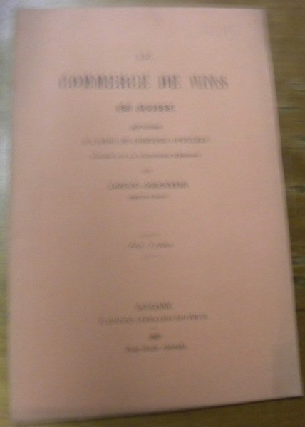 Le commerce de vins en Suisse jugé froidement à l’aide de chiffres officiels fournis par la statistique fédérale. | Rare and modern books | Grenier, Louis.