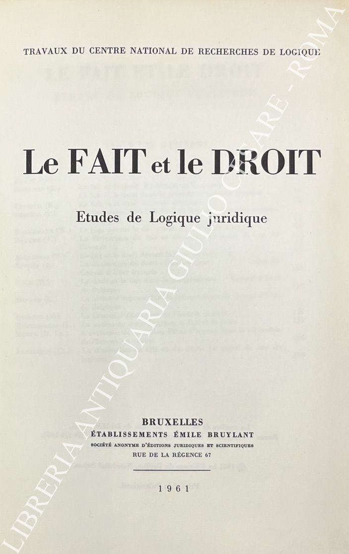 Le fait et le droit. Etudes de Logique juridique | Rare and modern books | Ascarelli T. - Bayart A. - Boland G. - Buch H. - Dekkers R. - En, Gish K. - Foriers P. - Hallemans W. - Morgenthal L. - Motte M.T., - Perelman C. - Rivero J.