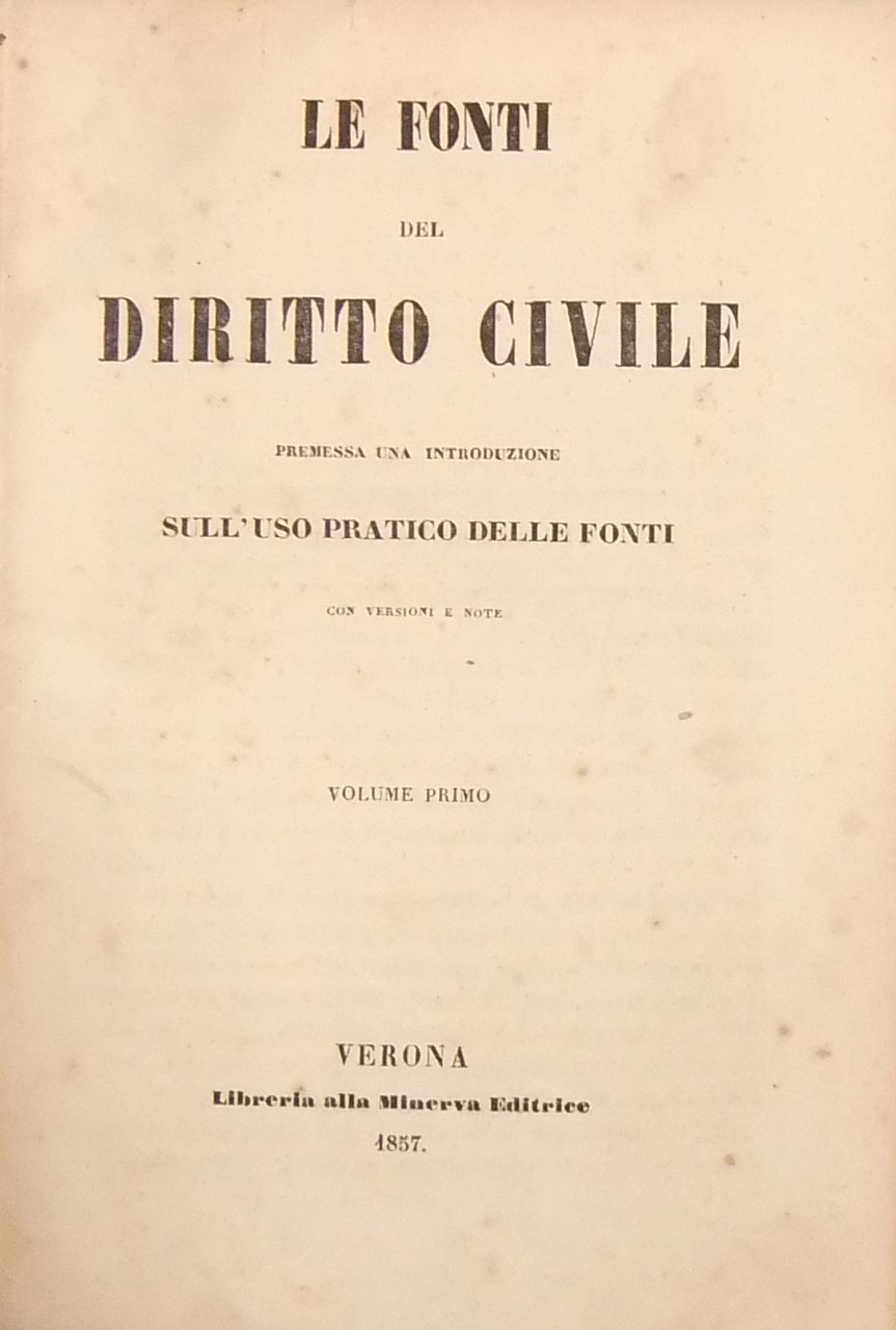 Le fonti del diritto civile. Premessa una introduzione sull'uso pratico delle fonti con versioni e note | Rare and modern books | Fonti Del Diritto Civile