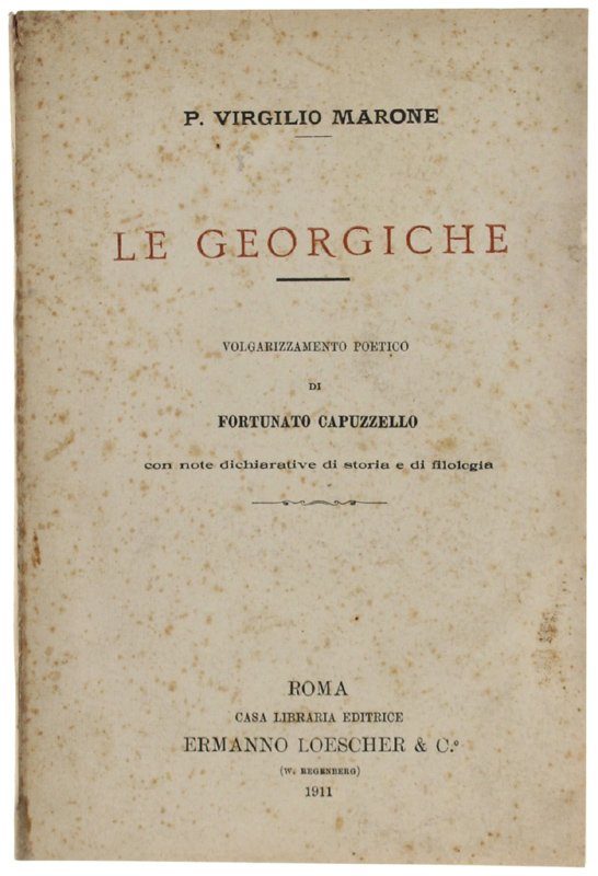 LE GEORGICHE. Volgarizzamento poetico di Fortunato Capuzzello con note dichiarative di storia e di filologia. | Rare and modern books | Virgilio P.M.