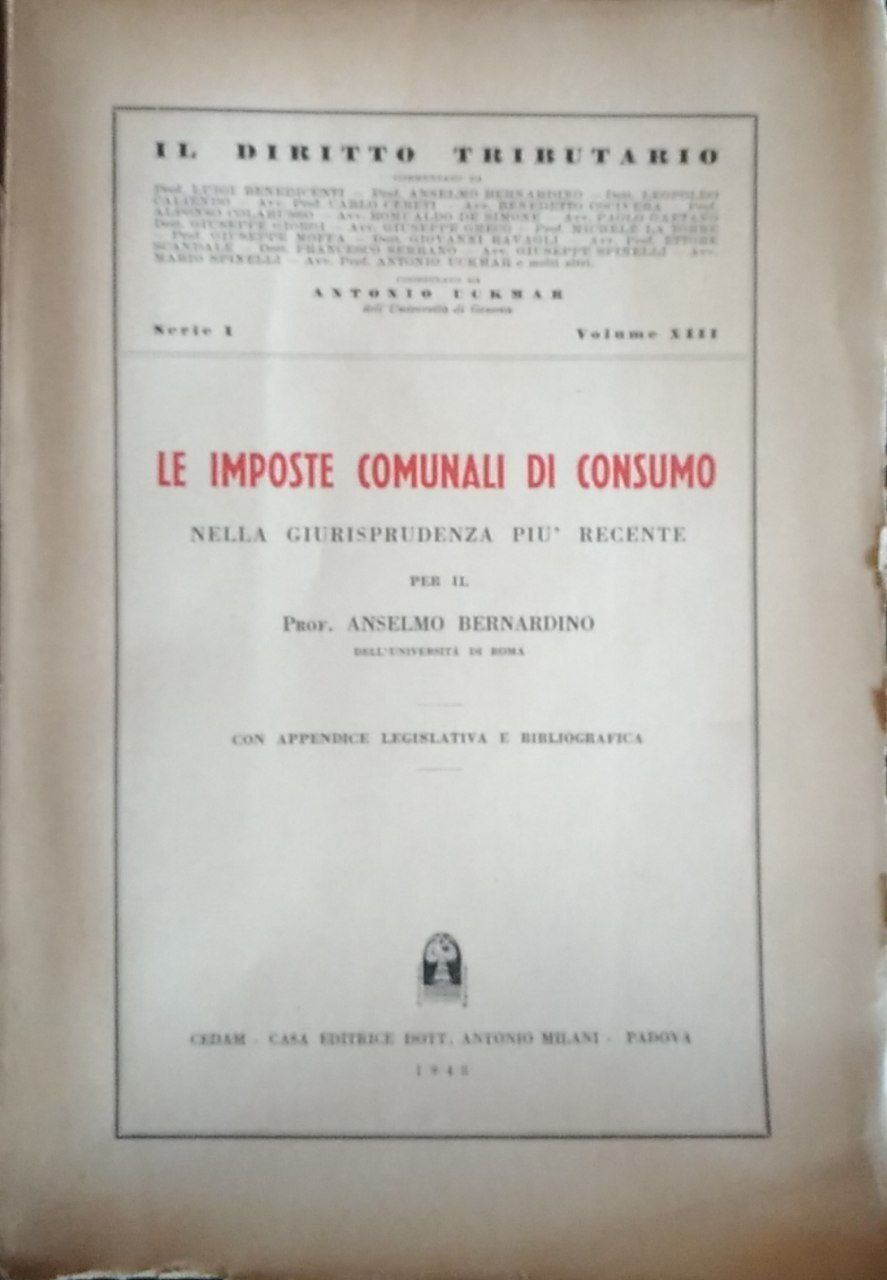 Le imposte comunali di consumo nella giurisprudenza più recente | Rare and modern books | Anselmo Bernardino, ,Anselmo Bernardino