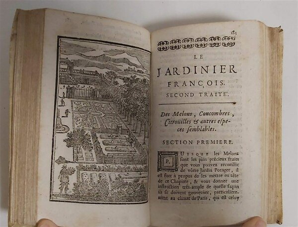 in-16, pp. (22), 389, (17), leg. p. perg. coeva. Antip. xilogr. e con 3 tavv. n.t. Interess. trattato sui giardini e botanica, ma anche sulla frutticoltura e ortaggi, con una sezione dedicata alle marmellate, confetture, sciroppi. Bella edizione aumentata rispetto alla prima del 1651, opera di gran successo tanto da essere ristampata per oltre un secolo, ma questa edizione in particolare è impreziosita da graziose tavole. Vicaire 463. [208]
