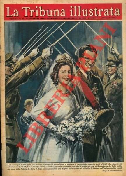 Le nozze regali di Bruxelles. Alla mistica solennità del rito religioso si aggiunge il caratteristico omaggio degli ufficiali che, davanti ala cattedrale dei Santi Michele e Gudula, alzano le spade sguainate formando una volta d'acciaio sul capo di Baldovino re dei Belgi e della sua sposa dona Fabiola de Mora. | Rare and modern books | Pisani Vittorio