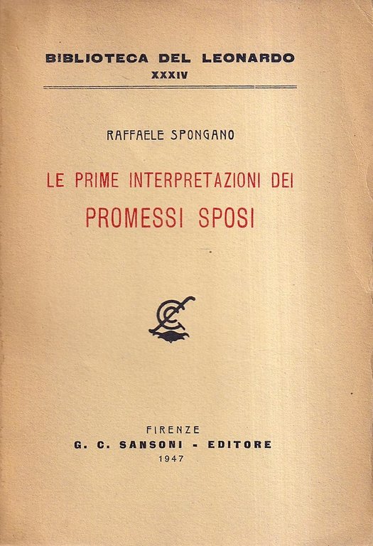 Le Prime Interpretazioni Dei Promessi Sposi | Rare and modern books | Spongano, Raffaele