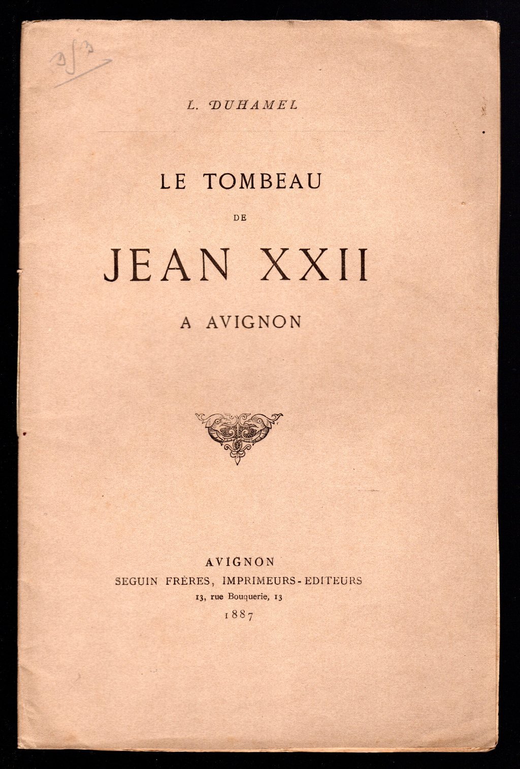 Opuscolo vintage in-8° con 23 pagg, Avignone, 1887. Saggi. Testo in lingua francese. Note a matita in copertina.