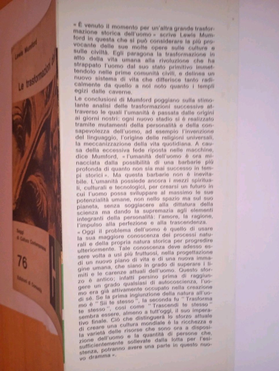 LEWIS MUMFORD, le trasformazioni dell'uomo - edizioni di comunità, 1968