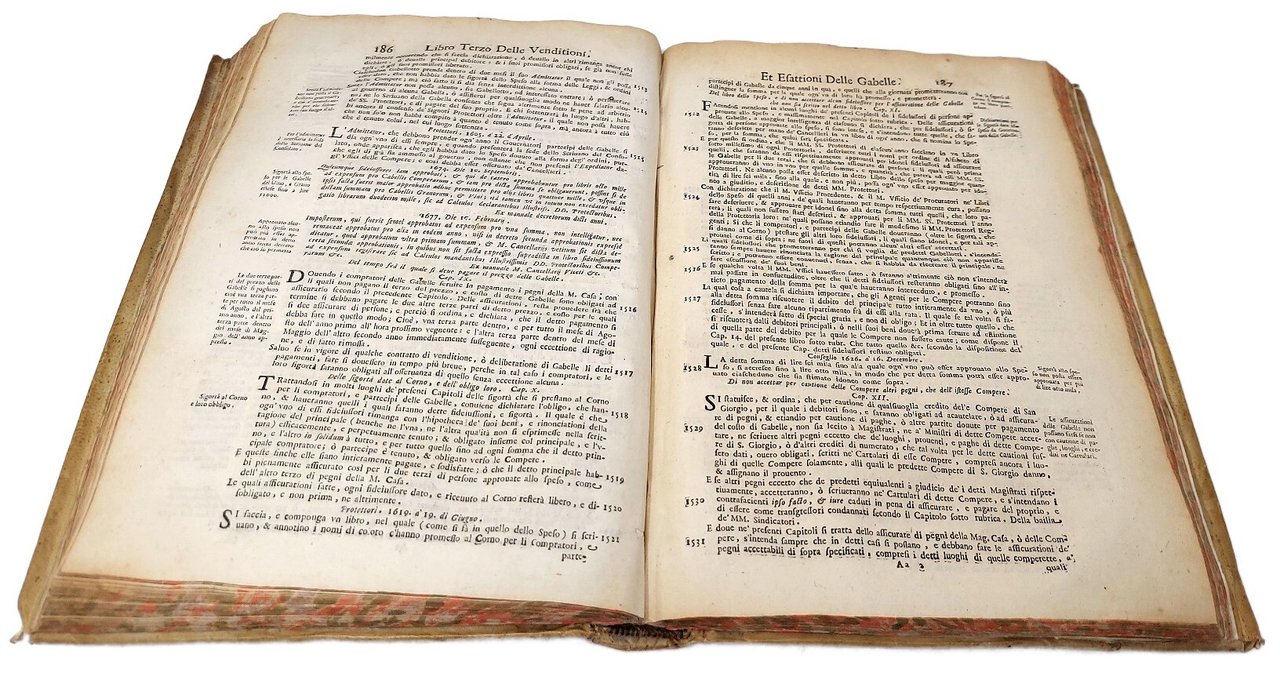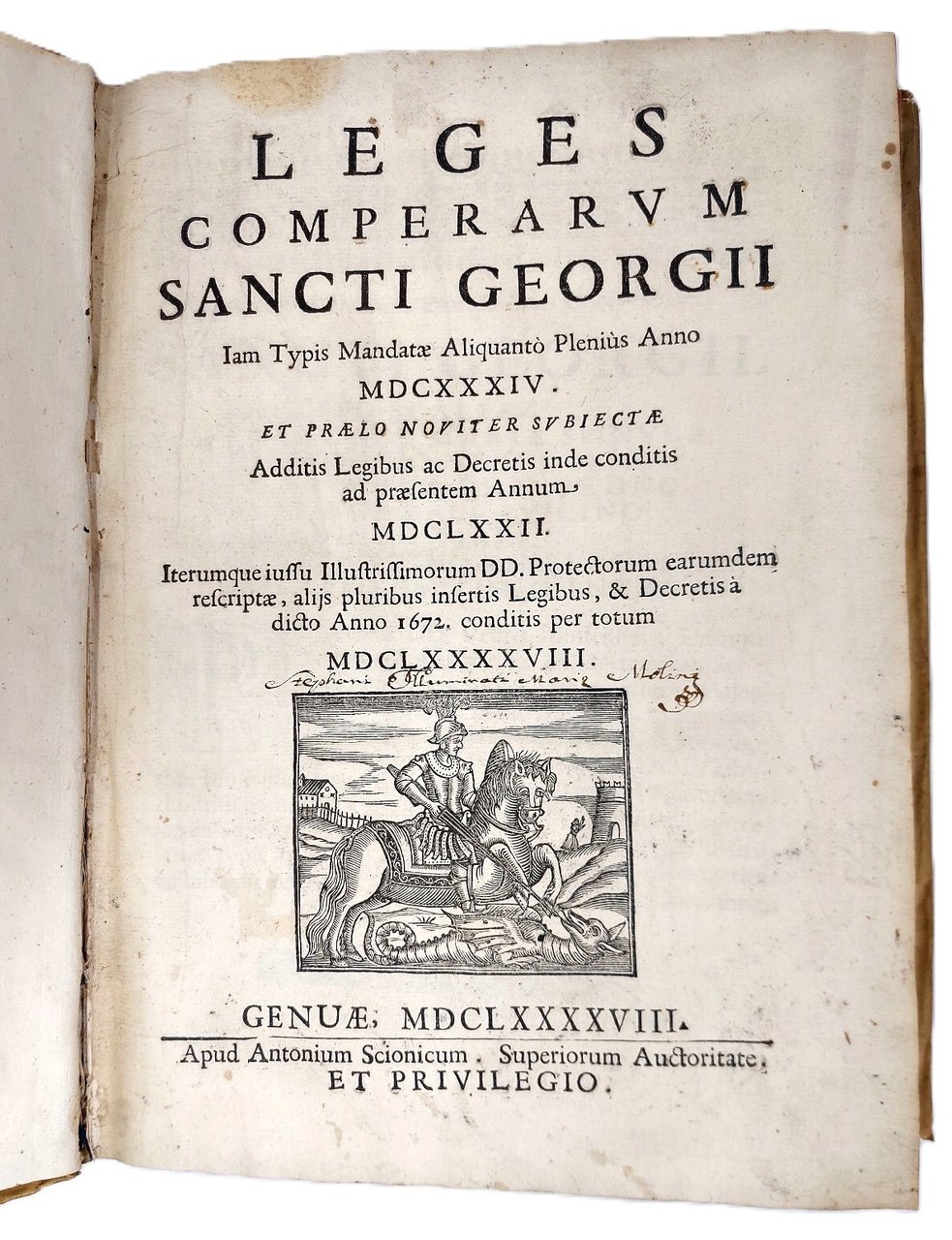 LEGES COMPERARUM SANCTI GEORGII iam typis mandatae aliquanto plenius anno MDCXXXIV. Et praelo noviter subiectae additis legibus ac decretis inde conditis ad praesentem annum MDCLXXII. Iterumque...rescriptae, aliis pluribus insertis legibus, & decretis a dicto anno 1672, conditis per totum MDCLXXXXVIII.  | Rare and modern books | GENOVA - STATUTI