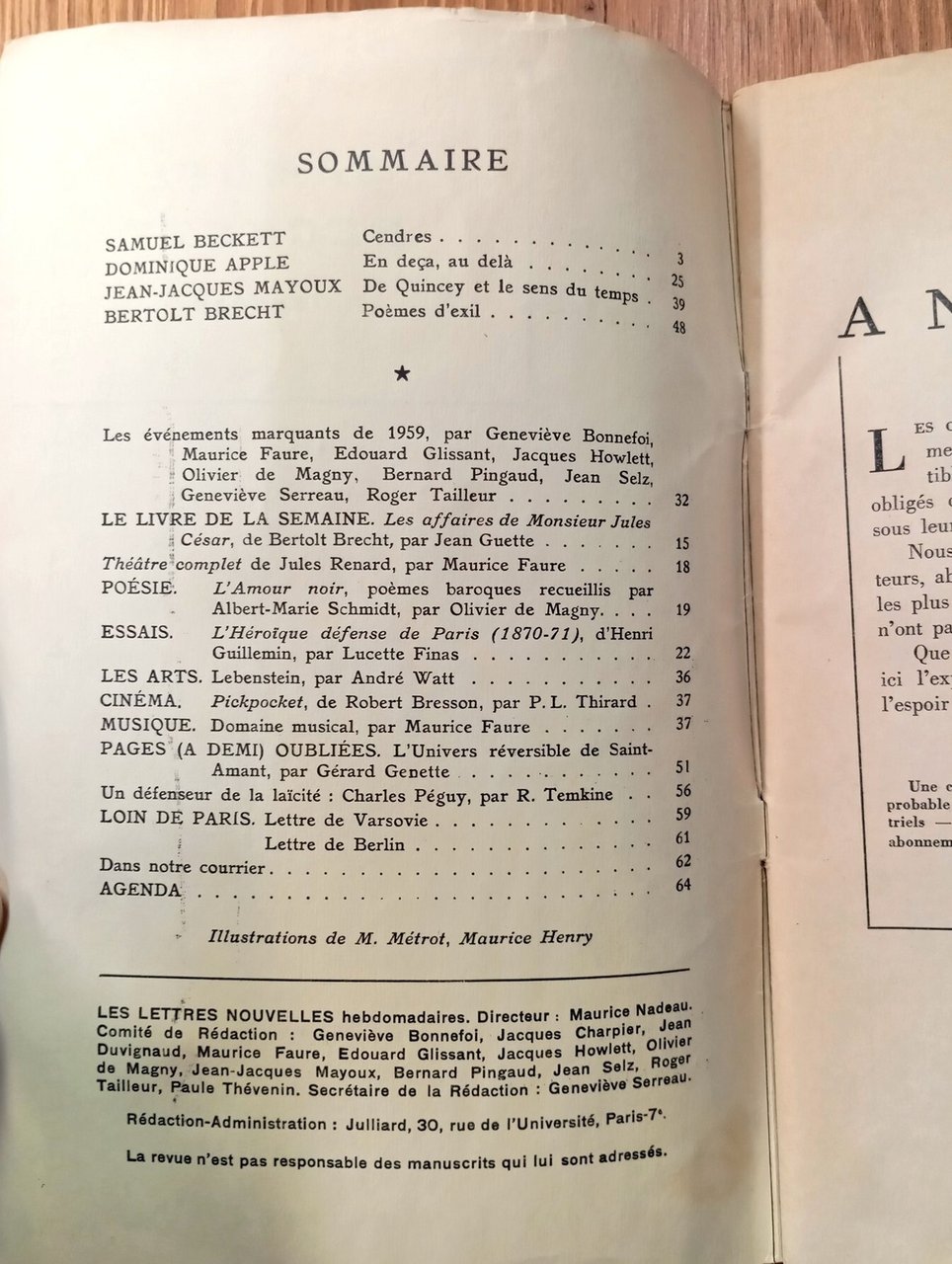 Les lettres nouvelles - 7e année, nouvelle série, n. 36, 30 décembre 1959 - janvier 1960 [Samuel Beckett: 'Cendres']