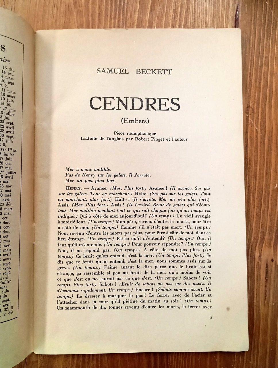 Fascicolo nella sua brossura originale rilegata a doppio punto metallico, 64 pagine. Contiene la prima traduzione francese di "Embers" di Samuel Beckett, redatta dall'autore con Robert Pinget ("Cendres. Pièce radiophonique", pp. 3-14); la prima edizione in volume sarà stampata dalle Editions de Minuit il 5 gennaio 1960. A seguire anche i "Poèmes d'exil" di Bertolt Brecht (pp. 48-50). Sommario consultabile nelle nostre immagini. Ordinari segni d'uso e del tempo, nel complesso esemplare integro e ben conservato; numero raro, da collezione.