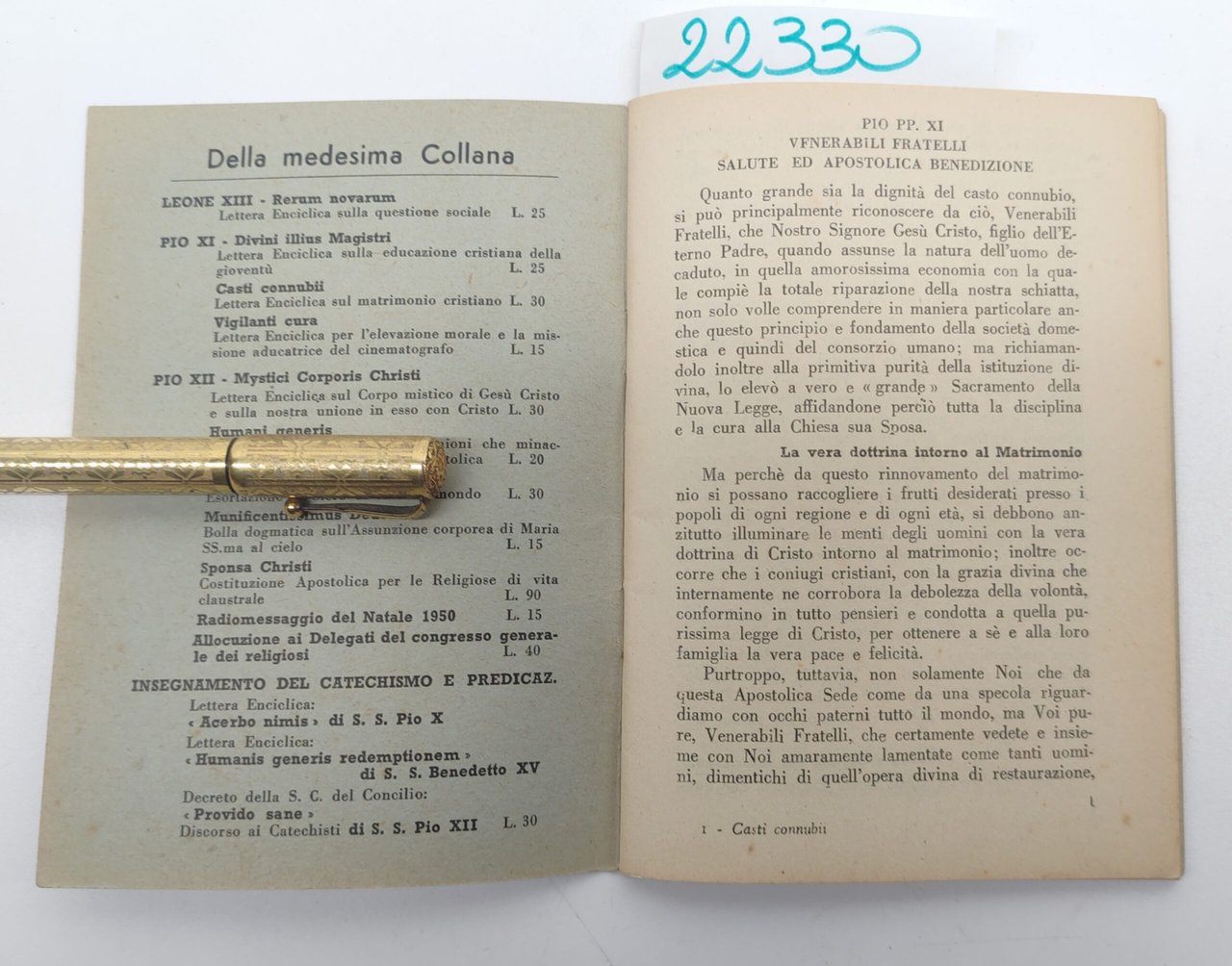 Lettera enciclica di sua santità Pio XI sul matrimonio cristiano Paoline 1930 | Rare and modern books |