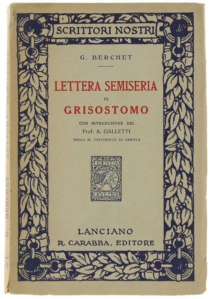 LETTERA SEMISERIA DI GRISOSTOMO. Con introduzione del prof. A.Galletti.