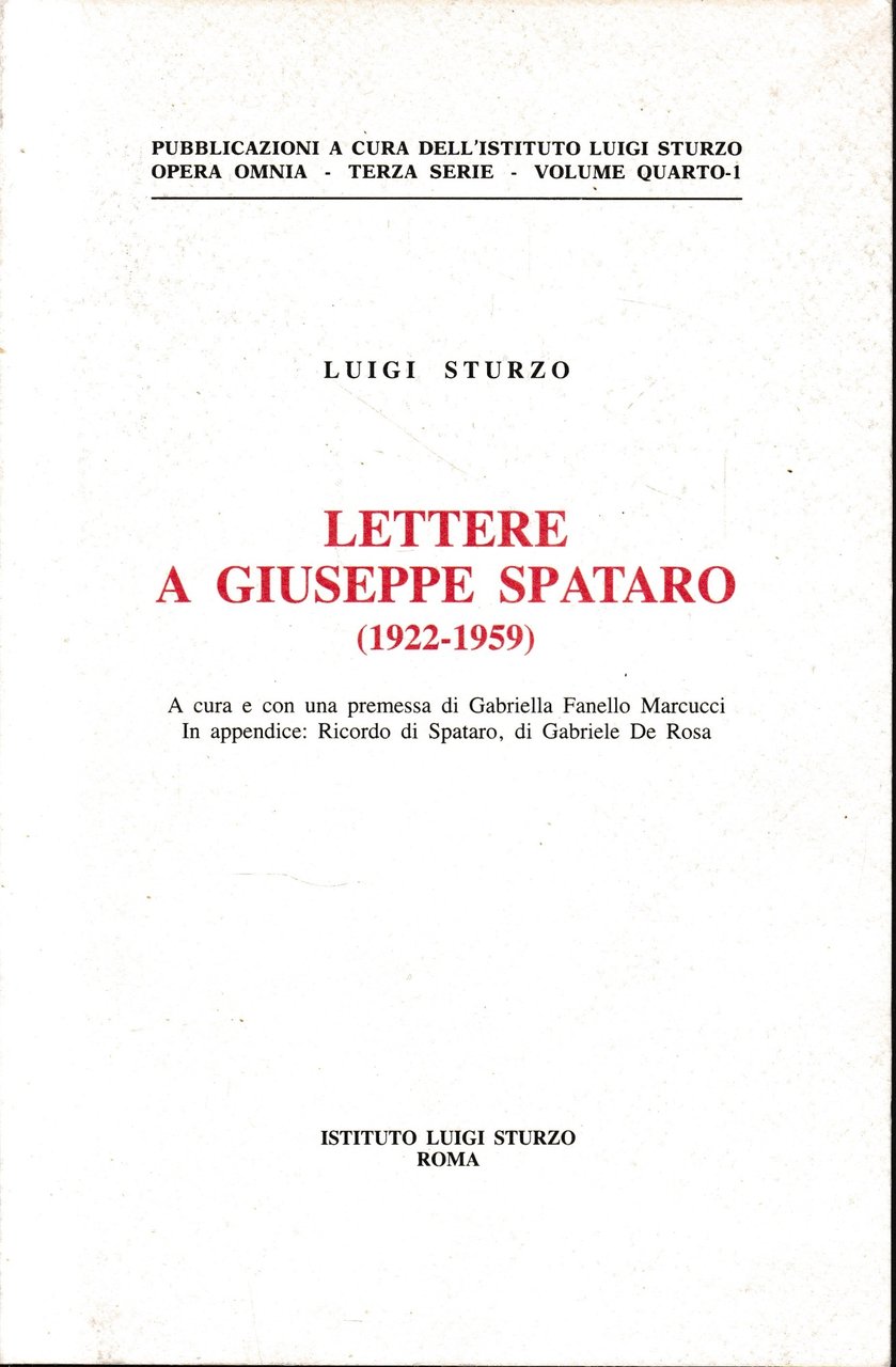 Lettere a Giuseppe Spataro (1922-1959) | Rare and modern books | Luigi Sturzo, ,Luigi Sturzo