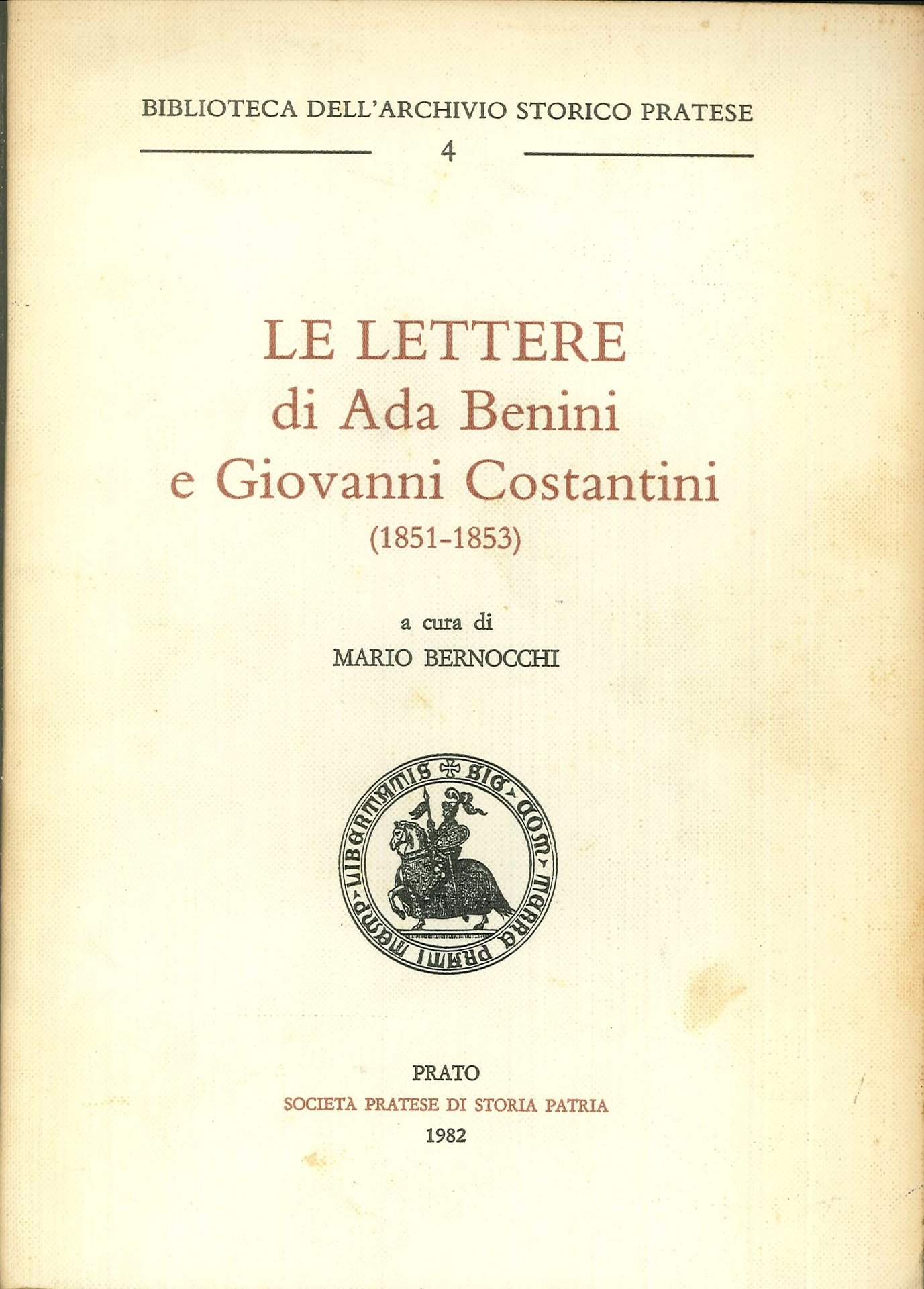 Prato, 1982; br., pp. 316. (Biblioteca dell'Archivio Storico Pratese. 4).