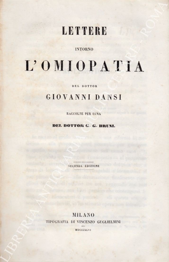 Lettere intorno l'omiopatia del dottor Giovanni Dansi raccolte per cura del dottor G.G. Bruni | Rare and modern books | Dansi Giovanni