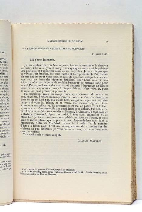 Lettres de prison. | Rare and modern books | Maurras (Charles).