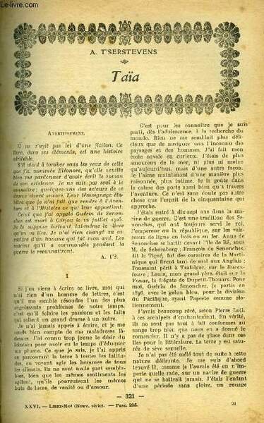 10 novembre 1930. In-12. Broché. Bon état, Livré sans Couverture, Dos satisfaisant, Intérieur frais. Paginé de 321 à 400. Nombreuses illustrations en noir et blanc dans et hors texte. . . . Classification Dewey : 840-Littératures des langues romanes. Littérature française