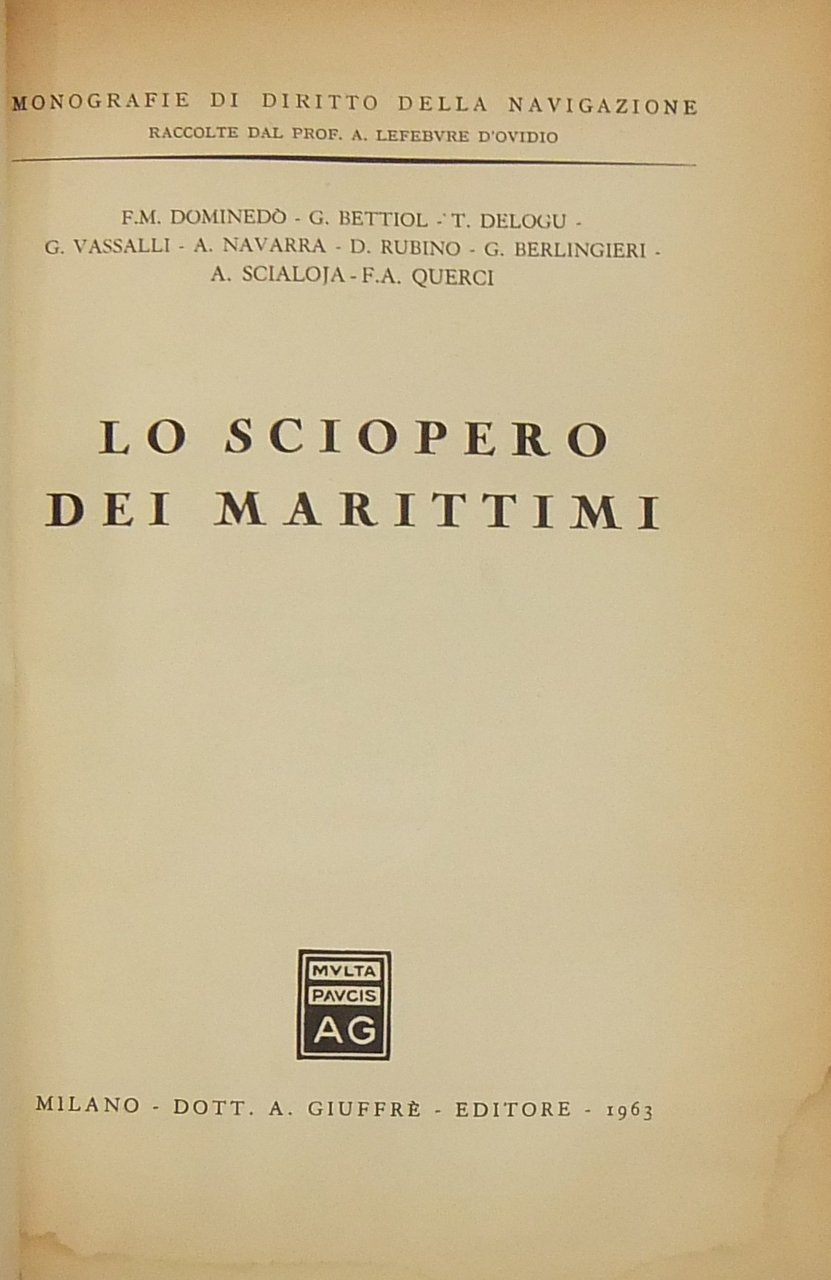 Lo sciopero dei marittimi | Rare and modern books | Berlingieri G. - Bettiol G. - Delogu T. - Dominedò F.M. - Navarr, A A. - Querci F.A. - Rubino D. - Scialoja A. - Vassalli G.