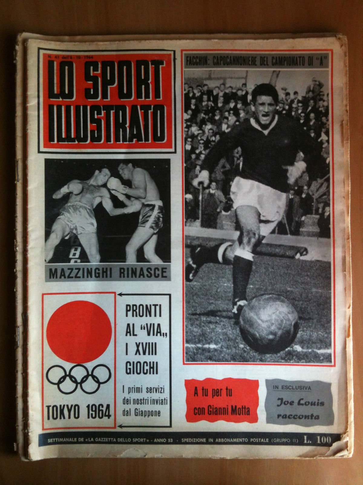 LO SPORT ILLUSTRATON^ 41 - 08/10/1964Facchini capocannoniere - Mazzinghi rinasce - Olimpiadi Tokio - Alessandro ArientiIn buino stato salvo piccolo strappo dorso e angolino mancante cover(123 g)E 3190