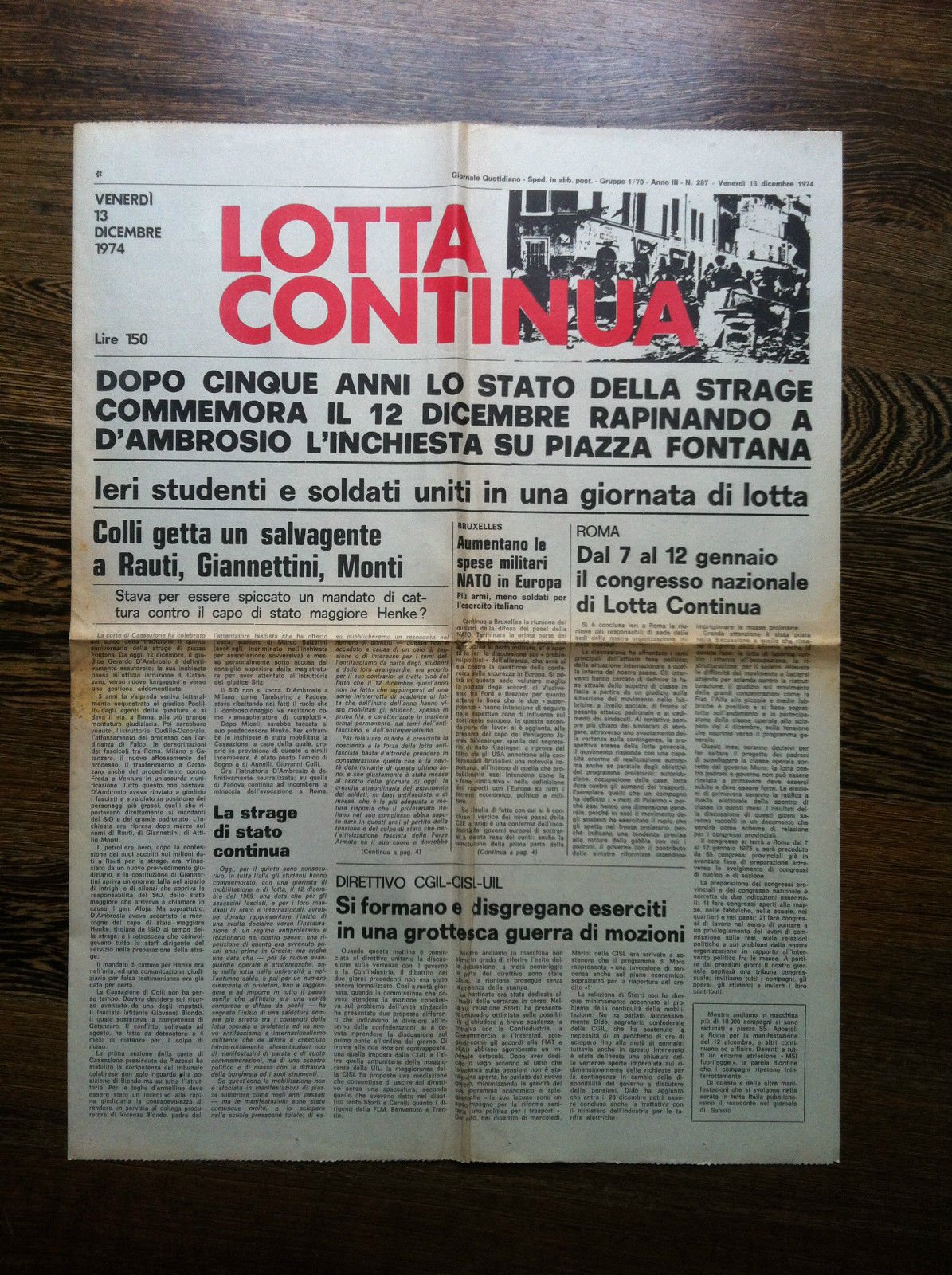 Lotta Continua Anno III n^ 287 Venerdi 13 Dicembre 1974 - E11250 | Rare and modern books | ,