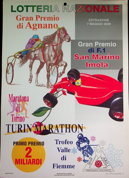 Lotteria nazionale: estrazione 7 maggio 2000. | Rare and modern books | [Lotterie - Agnano - San Marino Imola - Torino - Val Di Fiemme].
