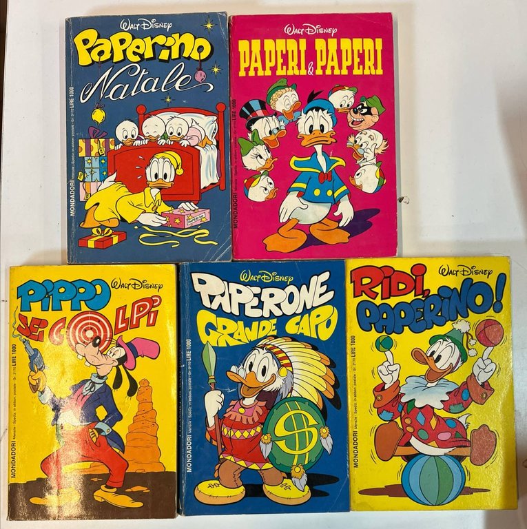 Lotto 5 volumi I Classici di Walt Disney (n° 61-63-64-66-68). Condizioni mediocri. Copertine con segni d'uso, macchie in alcuni casi. Dorsi usurati. Tagli con bruniture. Pagine ingiallite. paperback s.n. Mediocre (Poor) .