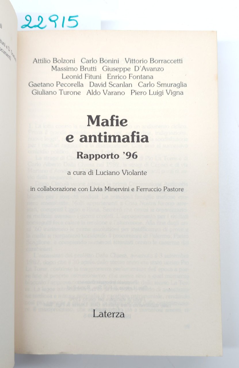 Luciano Violante Mafie e antimafia Rapporto 96 Laterza 1996 | Rare and modern books | Luciano Violante