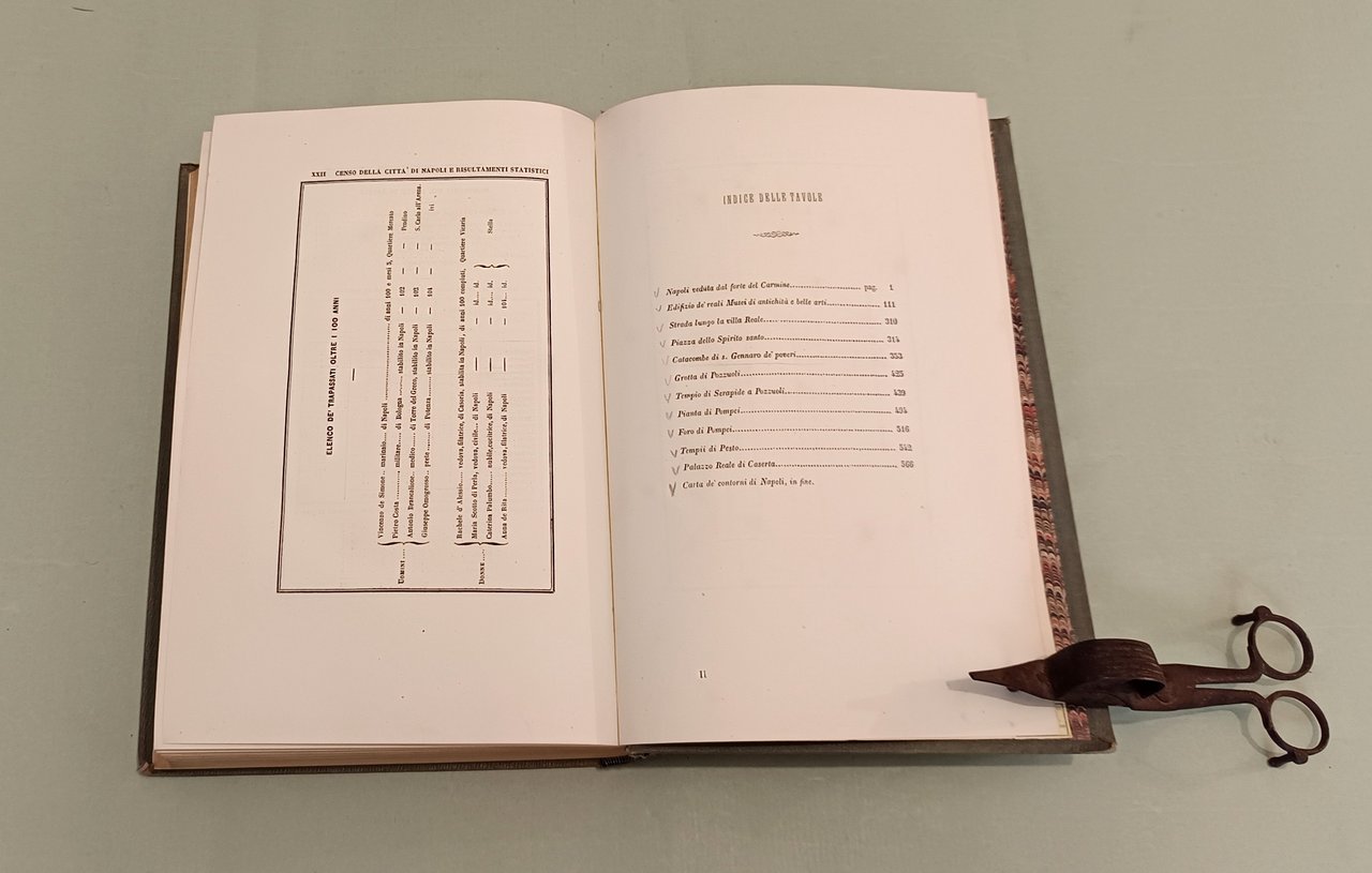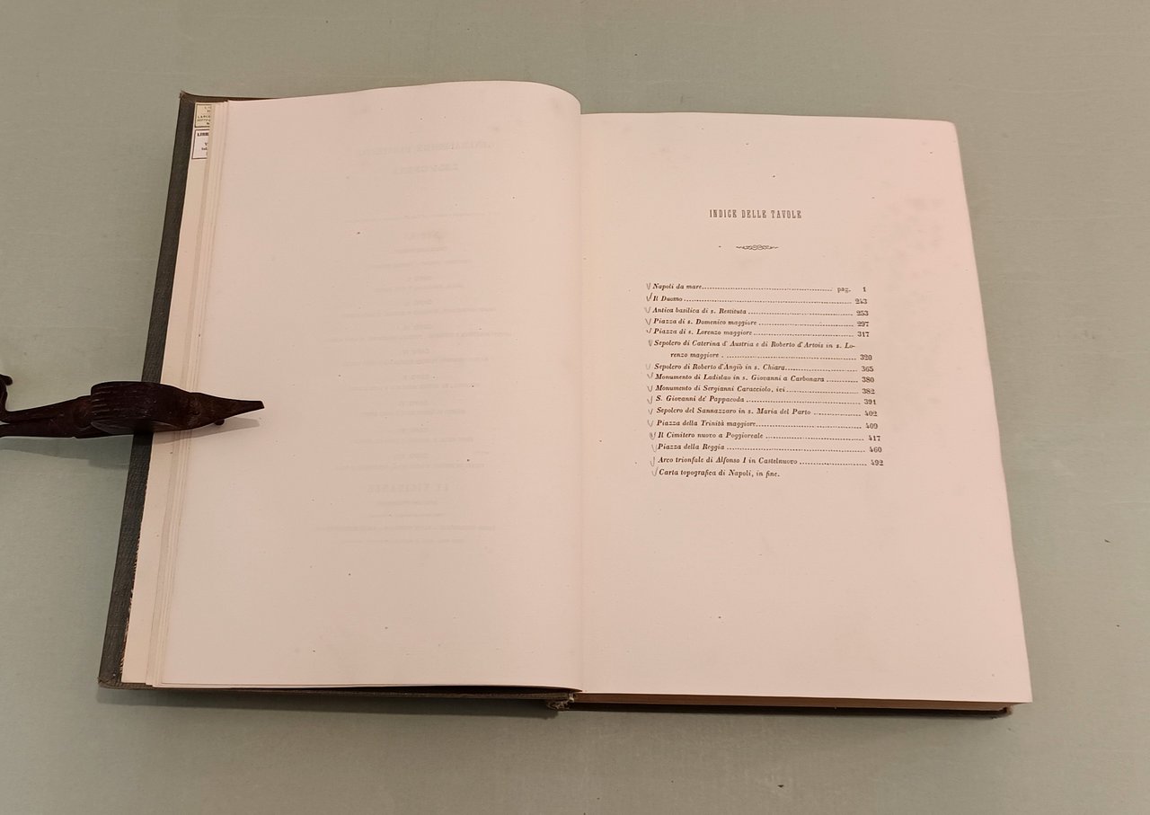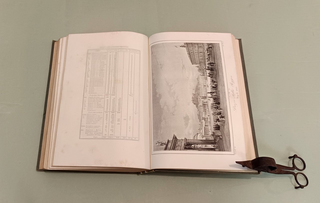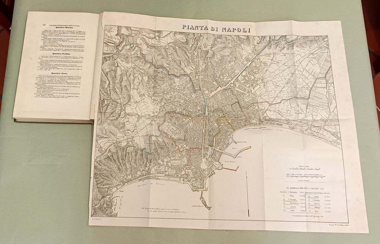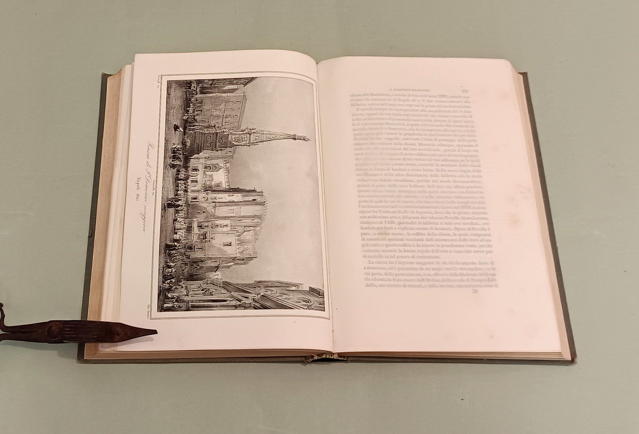 Napoli e i luoghi celebri delle sue vicinanze. Napoli, Nobile, 1845. Due volumi in 4to; pp. 12n.nn., 542; 602, 22, 1 con indice delle tavole. 3 grandi tavole spieghevoli: carta della Città di Napoli, carta dei Contorni di Napoli, carta di Pompei e 25 tavole disegnate da Achille Vianelli e Giacinto Gigante e litografate da Wenzel e Zezon. Le tavole protette da veline. Esemplare in perfette condizioni. Opera pubblicata in occasione del Settimo Congresso Scientifico degli Italiani. Scritti di Stanislao d'Aloe, Raffaele D'Ambra, Mariano d'Ayala, Carlo Bonucci, Cesare Dalbono, Francesco Puoti, Bernardo Quaranta. Bella legatura coeva in tutta tela con fregi in oro di gusto romantico ai dorsi, piatti inquadrati da fregio a secco.