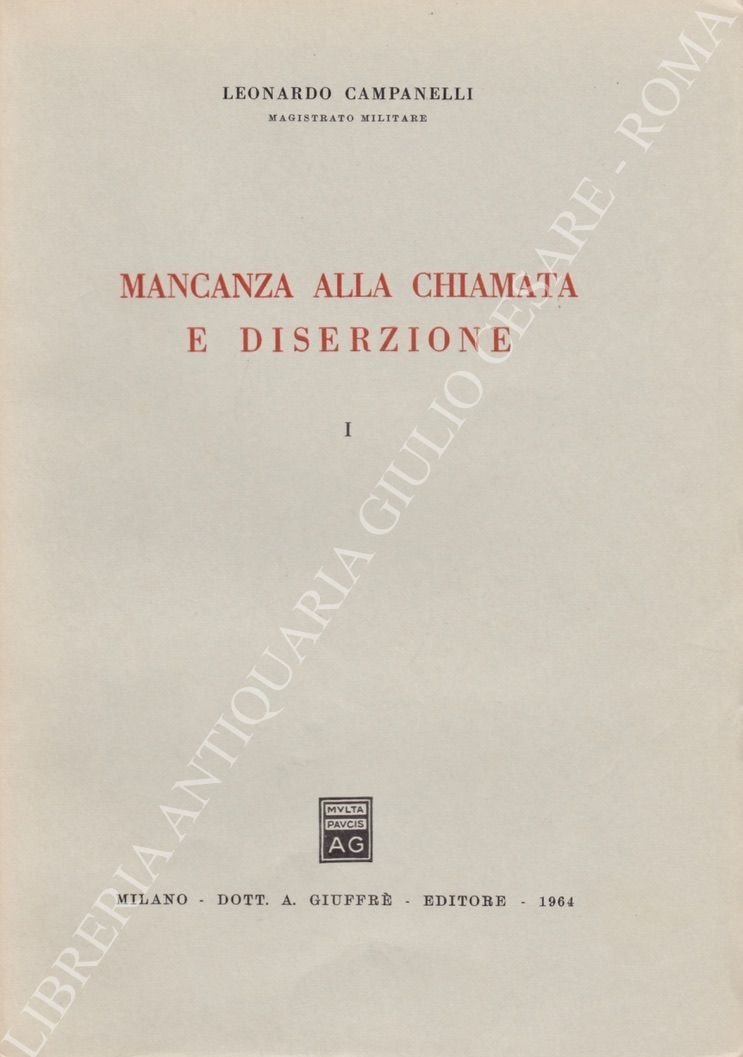 Mancanza alla chiamata e diserzione. Vol. I - Reati di mancanza alla chiamata; Vol. II - Reati di mancanza alla chiamata (Parte Terza), Reati di diserzione; Vol. III - Tutela penale dell'obbligazione militare. Appendice: Reati di leva (di D. Brunelli), Obiezione di coscienza (di G. Mazzi) | Rare and modern books | Campanelli Leonardo