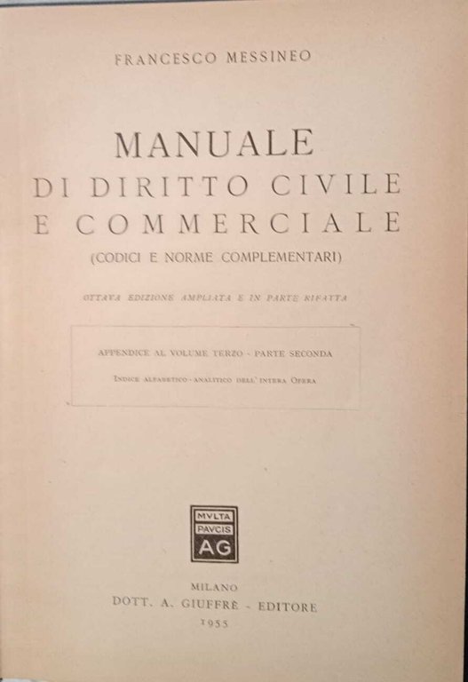 Manuale di diritto Civile e Commerciale (codici e norme complementari). | Rare and modern books | Francesco Messineo, ,Francesco Messineo