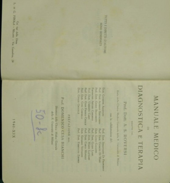 Manuale medico di diagnostica e terapia | Rare and modern books | Roversi A.S.