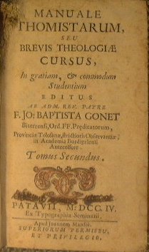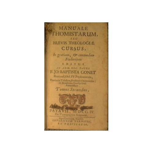 Manuale thomistarum, seu Brevis theologiae cursus, in gratiam, & commodum studentium editus ab adm. rev. patre f. Jo. Baptista Gonet. (tomo II) | Rare and modern books | Gonet Jean Baptiste