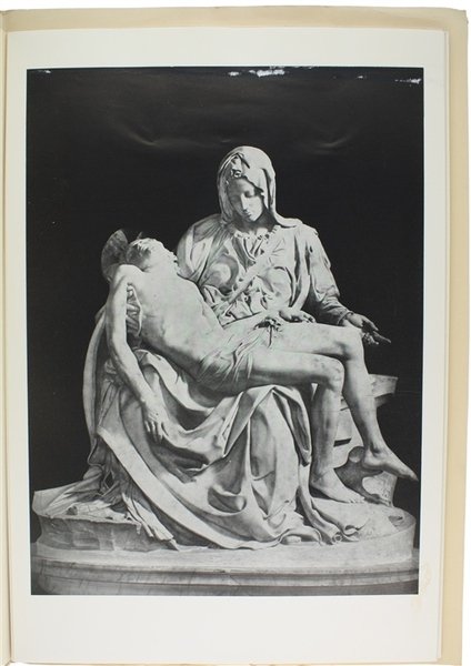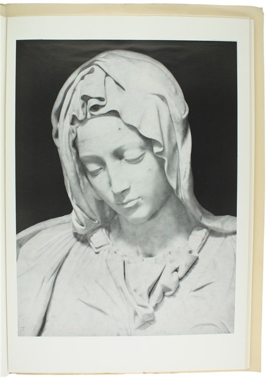 (Codice BK/0046) In folio (50 cm) 5 pp. Suite di 13 grandi tavole con fotografie delle quattro Pietà attribuite a Michelangelo, applicate. Con i facsimili di 2 lettere di Michelangelo che parla del "mal della pietra" e della sua guarigione a Fiuggi. Cartella editoriale illustrata con ritratto. Ottimo esemplare. ~~~ SPEDIZIONE IN ITALIA SEMPRE TRACCIATA